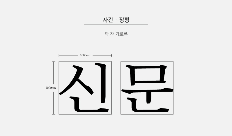 꽉 찬 넓은 가로폭과 적절한 자간 설정을 유지하여 여유롭고 시원한 인상을 줍니다. 일정한 글줄로 가독성이 높고, 편안함을 느낄 수 있는 안정적인 구조입니다.
