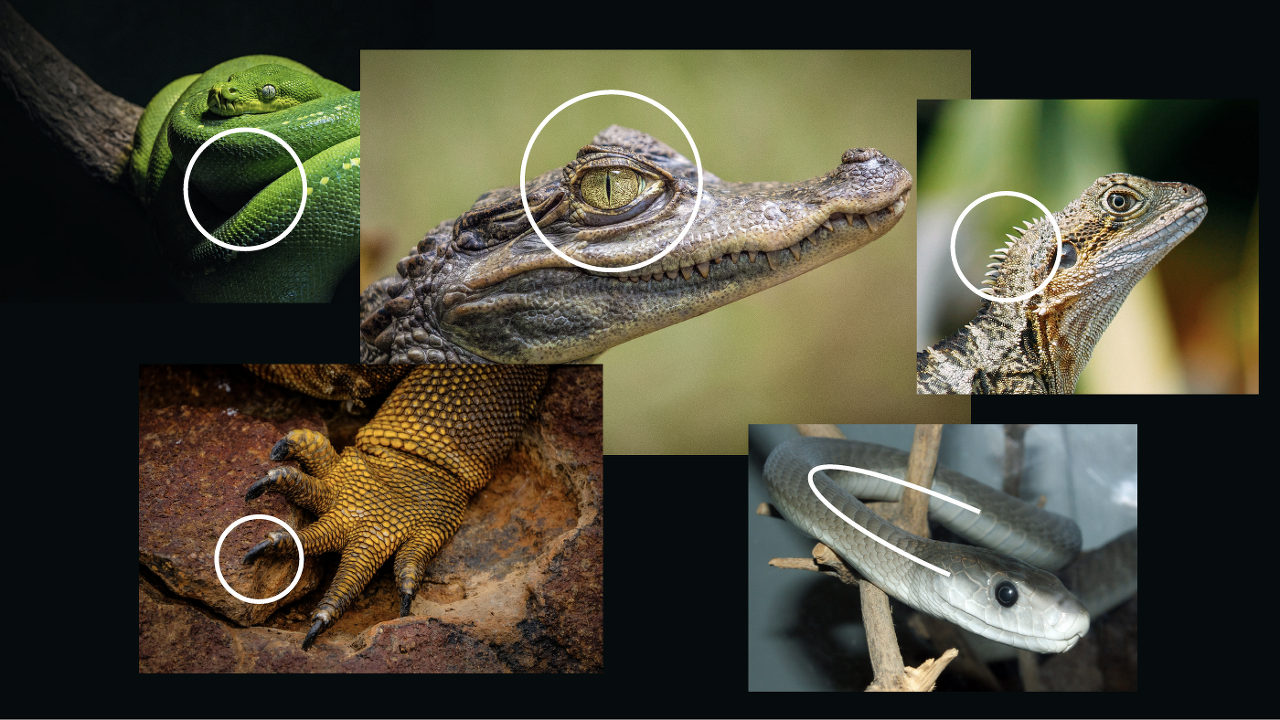 우선적으로 단계로 뱀, 도마뱀, 악어와 같은 파충류들의 이미지를 모아 무드 보드를 제작했습니다.