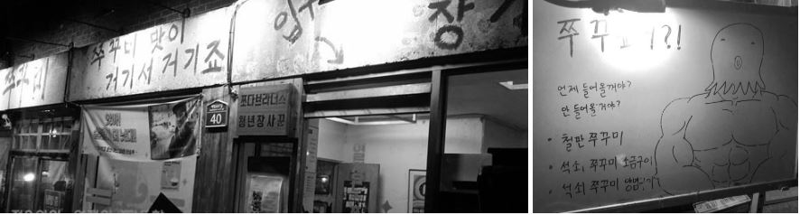 요즘 회사 근처에 청년들이 진을 치고 장사하는 골목이 만들어졌다. 삼 년여 된듯한데, 주변에 많은 먹거리 집이 생긴다는 것은 무척 반가운 일이다. 점심 메뉴를 고르는 일이 얼마나 스트레스를 주는지 많은 직장인들은 잘 알 것이다. 그런데 흥미로운 것은 새로 생긴 가게들의 간판이 그동안의 무뎌진 감각을 깨워주는 자극제가 된다는 것이다. 이제껏 깔끔하고 잘 정돈된 간판이 좋다는 생각을 180도 바꿔 주는 고마운 일들이 생겨나기 시작했다.