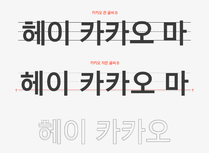 안녕하세요. 오늘은 대한민국 글로벌 기업 카카오의 전용서체 「Kakao」작은 글씨, 큰 글씨를 소개해 드립니다. 폰트릭스에서 제작한 카카오 전용서체는 모바일 및 인터넷 서비스를 제공하는 국내 굴지의 IT 기업인 만큼 사용 환경에 따라 글자가 시각적으로 가장 적절해 보이도록 '작은 글씨'와 '큰 글씨' 두 가지 버전으로 제작되었습니다. 어떤 특징이 있는지 살펴볼까요?