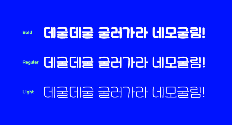네모굴림 Bold는 두툼한 굵기에 굉장히 귀엽고 텐션이 느껴지는 헤드라인 글꼴인데, Light 두께로 쓸 경우 한 층 가볍고 깔끔하면서 정돈된 느낌을 주어 본문용으로 쓰기에도 좋습니다.