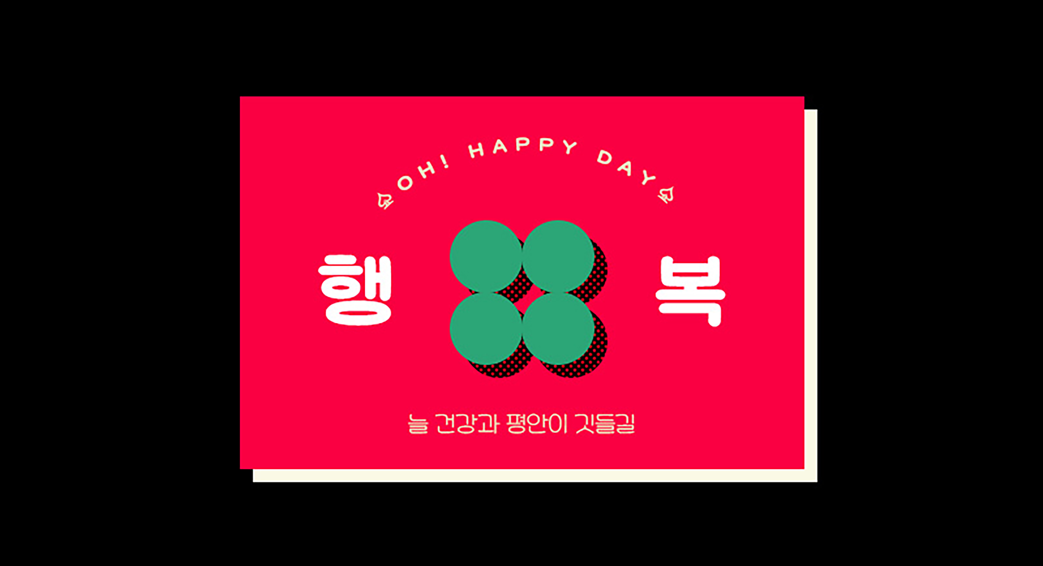 Rix네모굴림 서체를 활용하여 디자인의 퀄리티를 높여보세요. 귀염뽀짝 특별한 연하장 카드를 받는 순간 행복 그 자체!