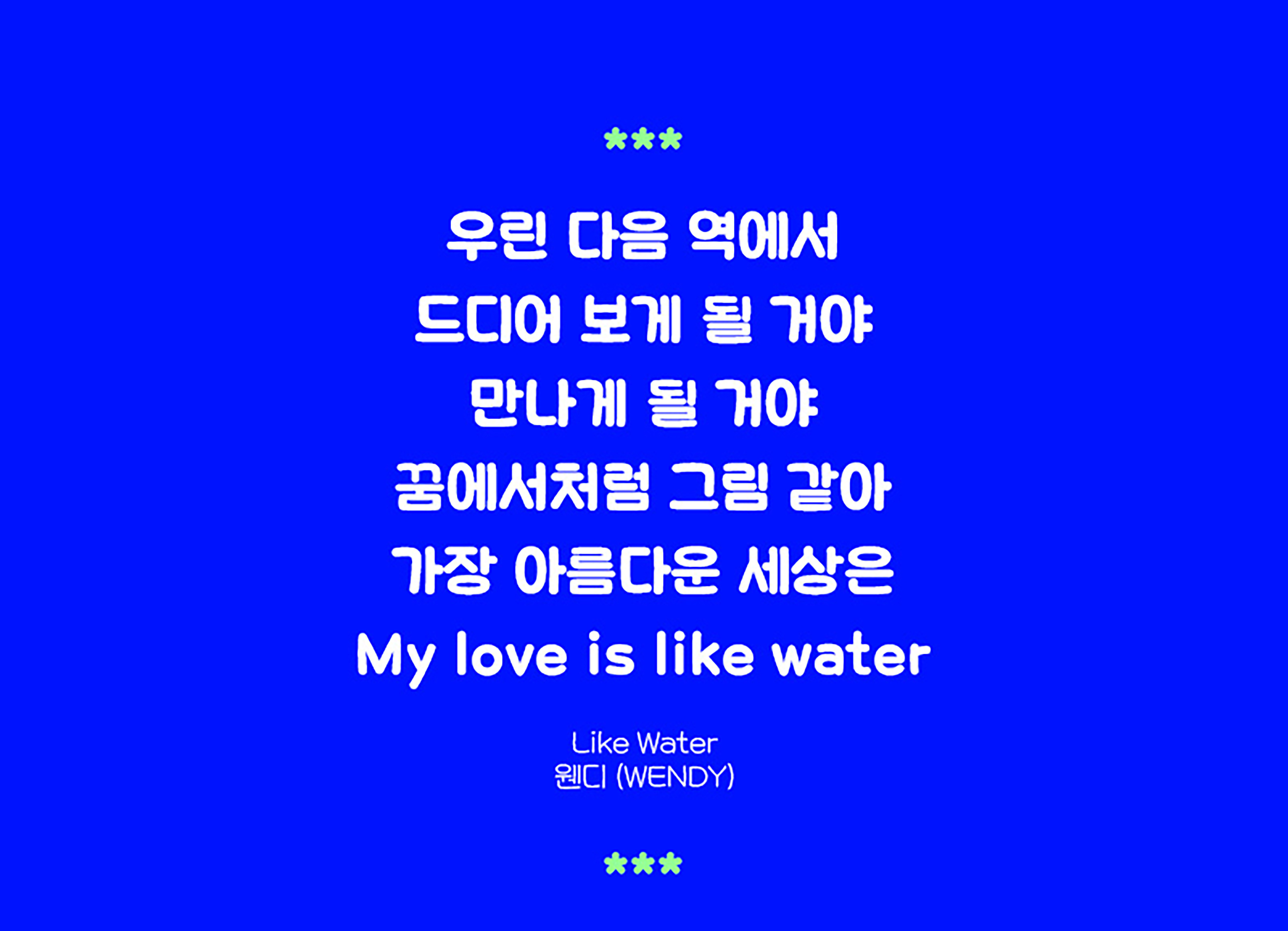 두꺼운 굵기로 쓴 텍스트를 보면 귀여운 인상이 더욱 도드라지는 것을 볼 수 있는데요! 안정적인 글줄로 정돈된 느낌을 주면서도 통통한 획으로 사랑스러운 매력을 느낄 수 있는 서체입니다.