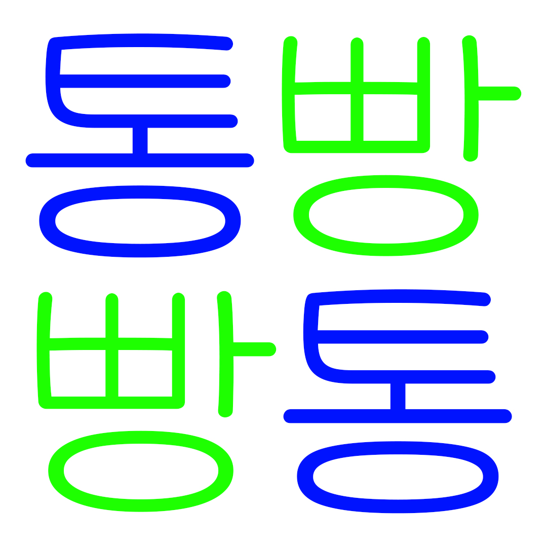 Rix네모굴림은 텐션에 대한 고민을 많이 한 폰트입니다. 사각형 골격이 망가지지 않고 텐션을 넣어 빵빵한 느낌을 낼 수 있는 방법을 찾다 안으로 갈수록 펴지고 밖으로 갈수록 텐션을 넣는 규칙을 찾았습니다. 이 규칙을 알고 보시면 네모굴림이 더 재밌을 거라 생각합니다~!