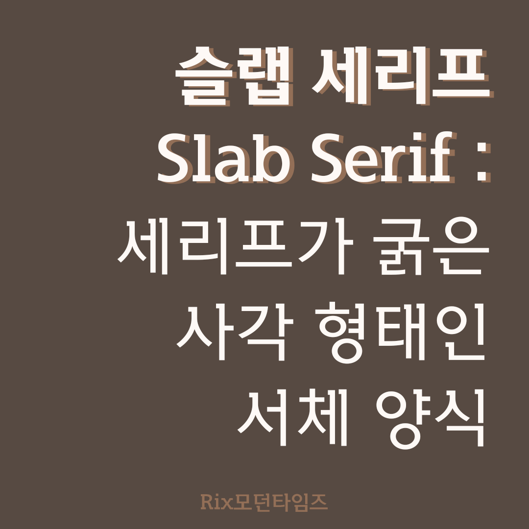 슬랩 세리프는 위와 같이 글자와 기호를 이루는 획의 일부 끝이 돌출된 세리프가 굵은 사각 형태의 모습을 보이는 서체 스타일입니다. 기존의 슬랩 세리프 서체들과 다르게 Rix도로롱슬랩은 각이 진 부분을 부드럽게 굴려 제작되었습니다.
