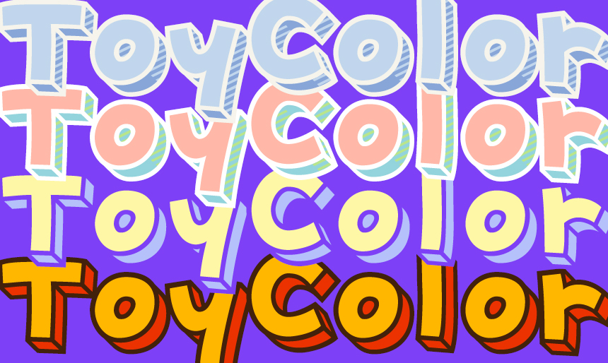 먼저 빈티지한 장난감을 모티브로 한 토이컬러Cloud 와 토이컬러CottonCandy 입니다. 차분한 하늘과 구름, 그리고 달달한 솜사탕이 떠오르는 컬러죠? 같은 디자인이라도 이렇게 색상과 패턴으로 다른 느낌을 낼 수 있다는 게 컬러 폰트의 매력인 것 같아요!