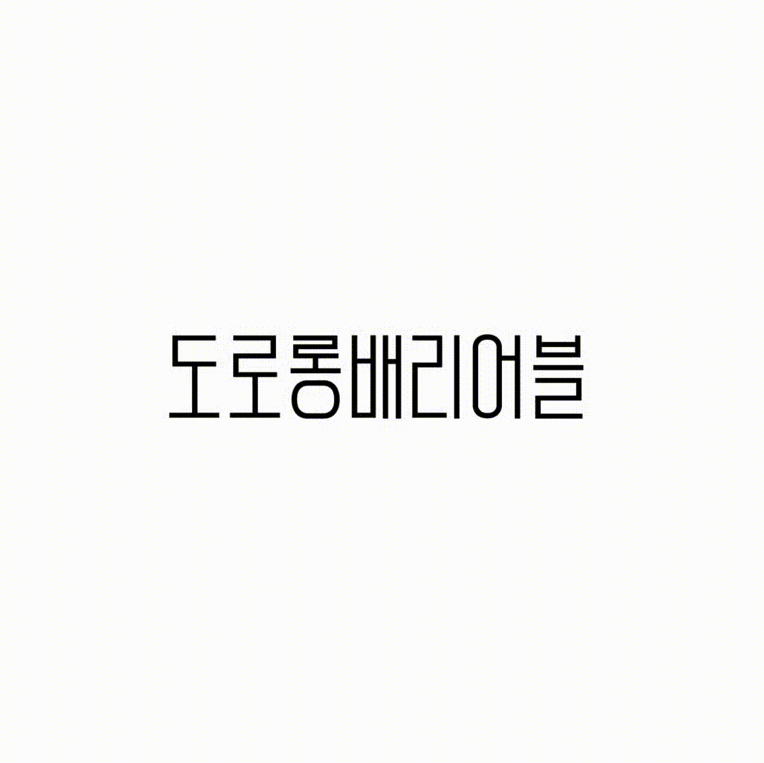 모던하고 심플한 디자인의 도로롱배리어블은 글자 무게 중심의 이동이나 굵기, 너비의 차별화로 다양한 작업에 재미있게 활용할 수 있습니다.