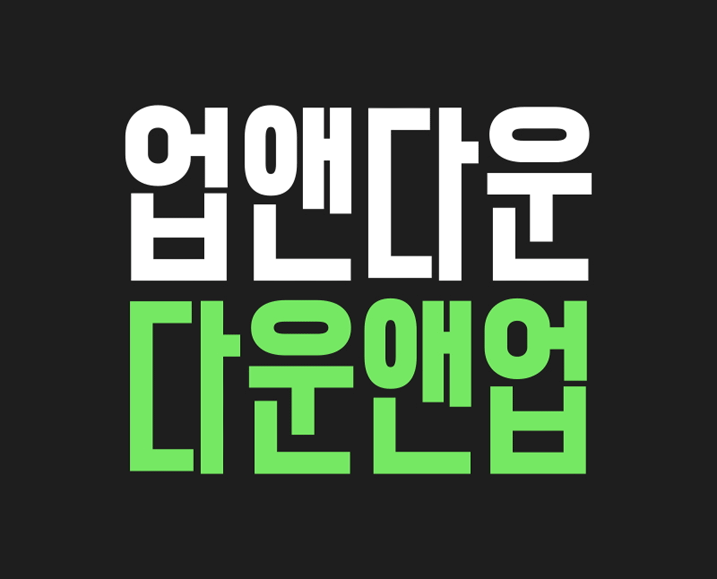 Rix도로롱배리어블 UpDown은 글자의 무게 중심을 위, 아래로 이동할 수 있습니다. 기본적으로 Rix도로롱은 좁은 폭을 가지고 처음 출시되었는데요. 배리어블 폰트로 재창조되면서 한정적이었던 글자 폭을 더 늘려서 사용할 수도 있고, 무게 중심을 통해 새로운 이미지도 구현할 수 있게 되었습니다.