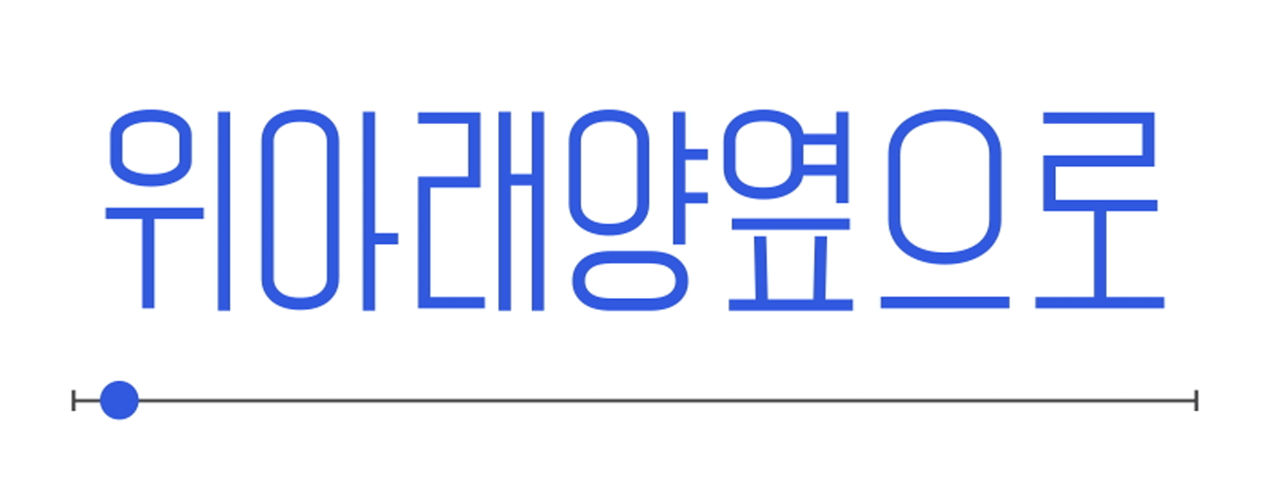 무게 중심이 지그재그로 적용되어 있어 짧은 글도 단조롭지 않고 디자인적으로 연출할 수 있습니다. UI나 UX 디자인, 영상 썸네일, 자막 등에 다양하게 활용하기 좋아요.