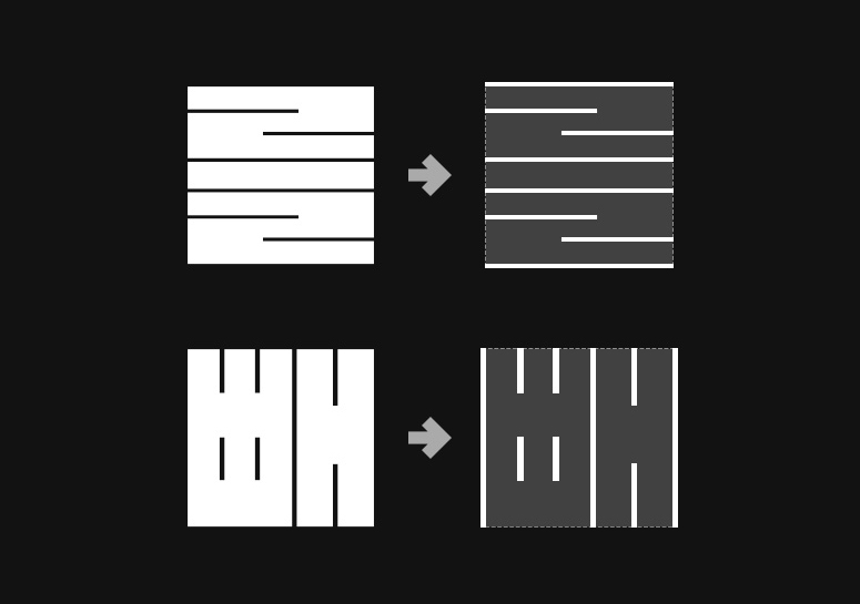 Rix블랙산스는 2019년에 출시되었던 제목용 서체로, 최대 굵기를 사용하여 속 공간의 하얀 면 사이 속 공간으로 글자 사이를 구분하여 표현한 강한 인상의 폰트입니다.