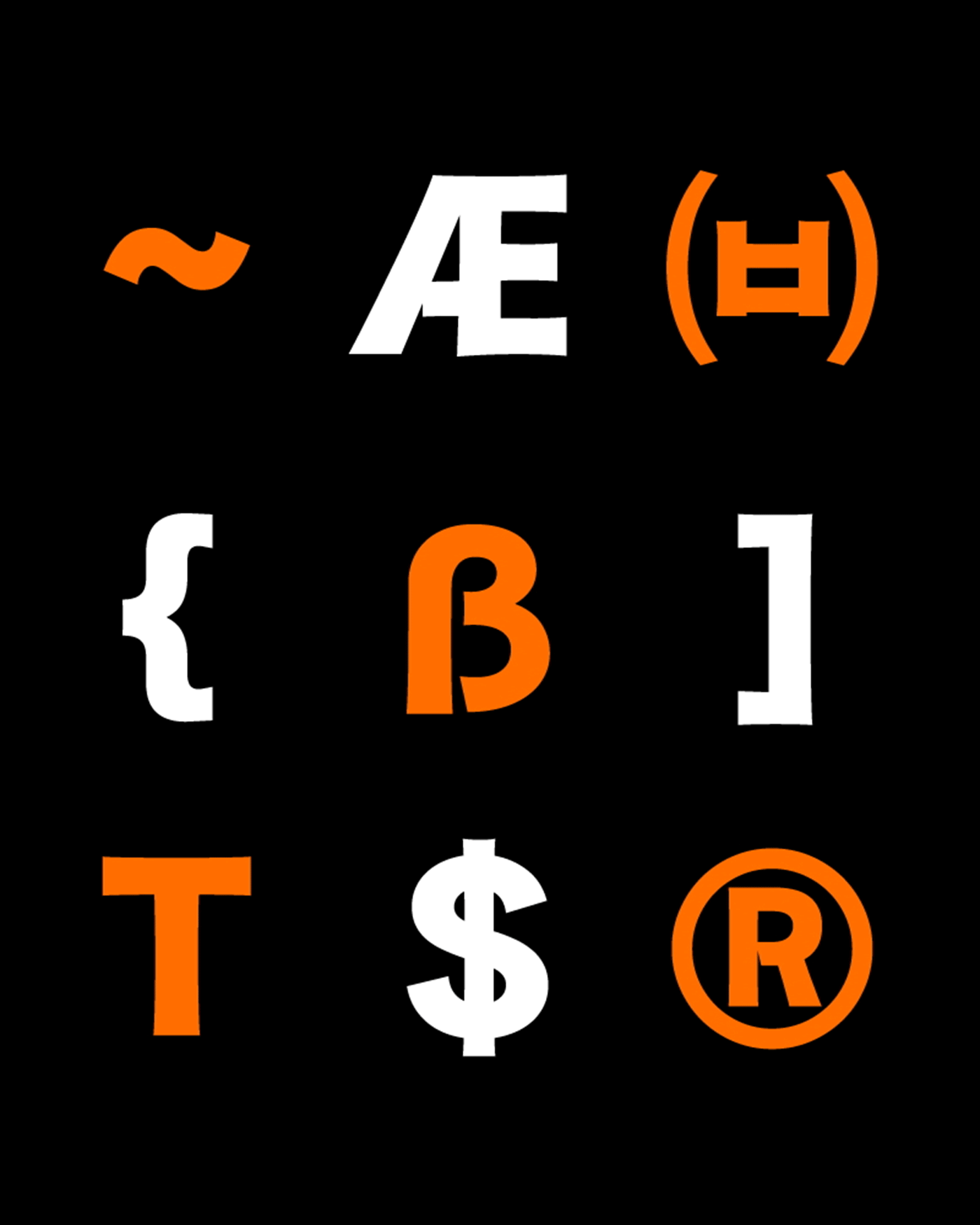 숫자, 영문, 여러 특수 기호들도 동일한 스타일이 적용되고 특징적인 크랙 요소를 배치해 통일감 있는 디자인이 가능합니다.
