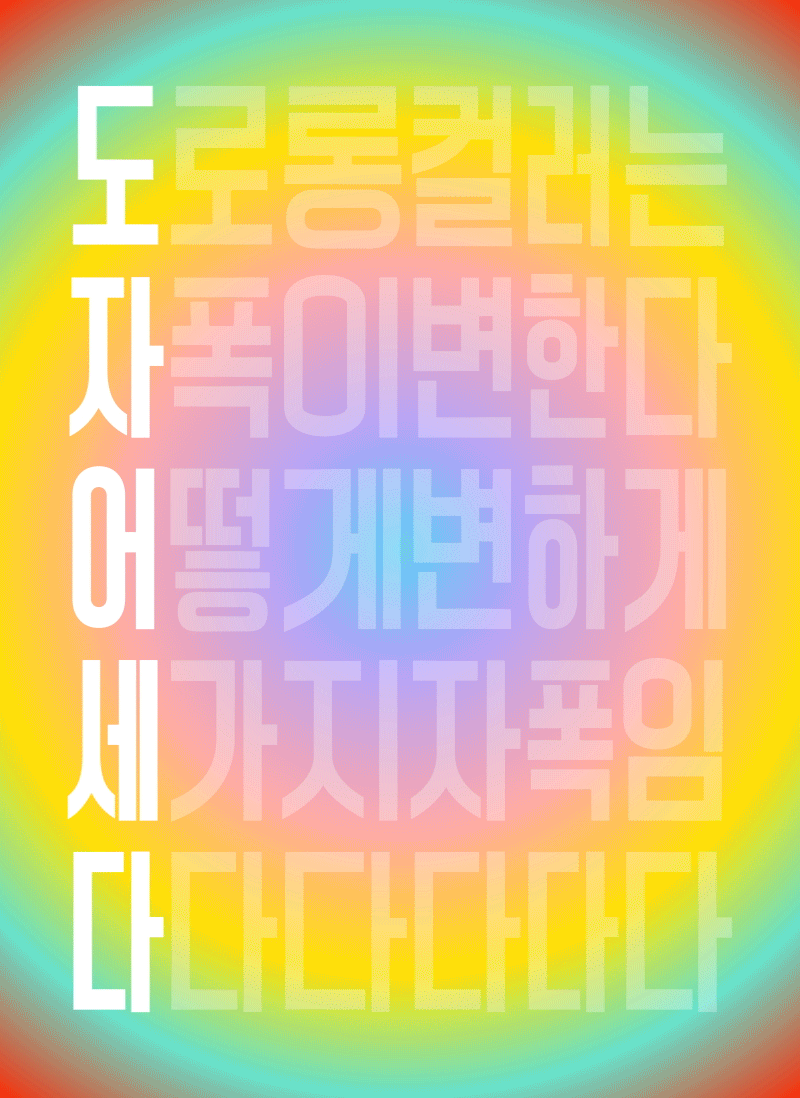 일단 도로롱 시리즈가 배리어블 폰트로 제작이 잘 되어 있어서 편하게 기획과 제작까지 할 수 있었습니다. (현주 디자이너님 감사합니당 😊) 저희 폰트릭스 서체 중 대체글립을 활용한 재미있는 폰트들이 많은데요. 저는 도로롱에도 접목시켜 보면 어떨까 생각하다 기획을 하게 되었고, 색상도 고민 없이 편하게 사용하실 수 있도록 *컬러폰트로 제작했습니다.