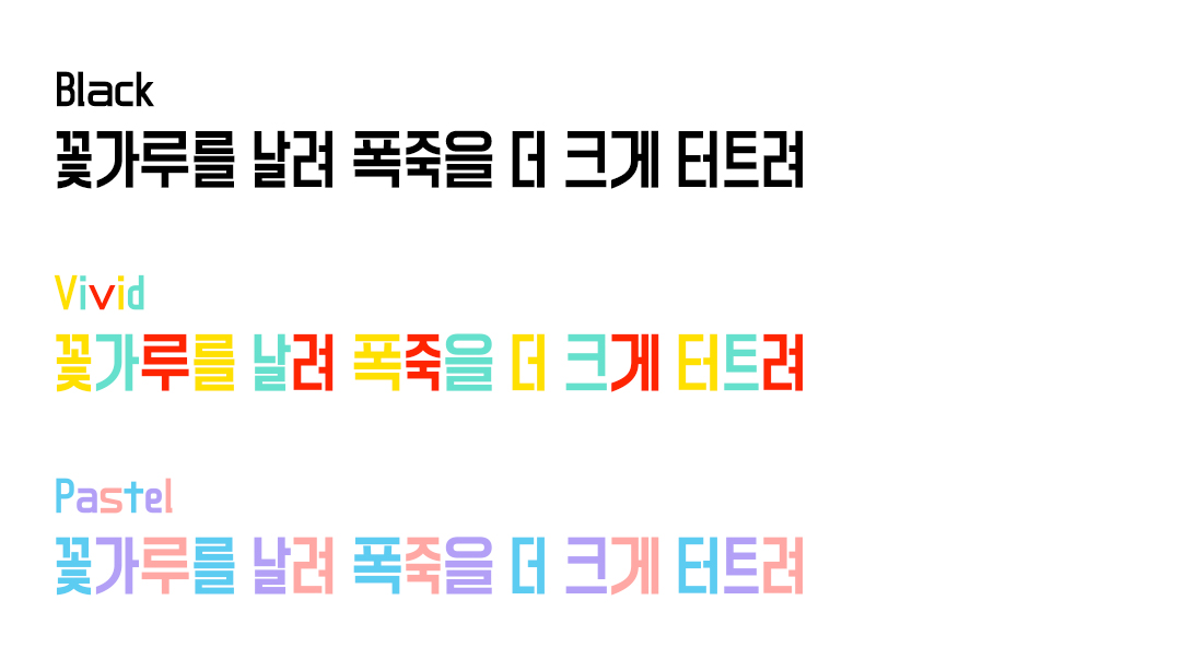 처음에 기획했던 대로 썸네일이나 홍보물 타이틀 등 컬러 고민 없이 편하게 제목용으로 사용해 주시면 좋을 것 같습니다.