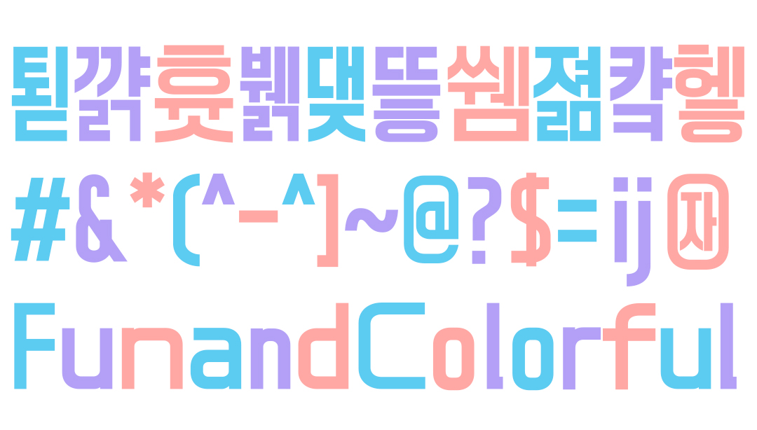 대체 글립으로 한글 2,350자 이외의 받침이 있는 글자도 표현할 수 있으며, 동일한 특징이 적용된 영문, 숫자, 여러 특수 기호들도 조화롭게 사용할 수 있습니다.