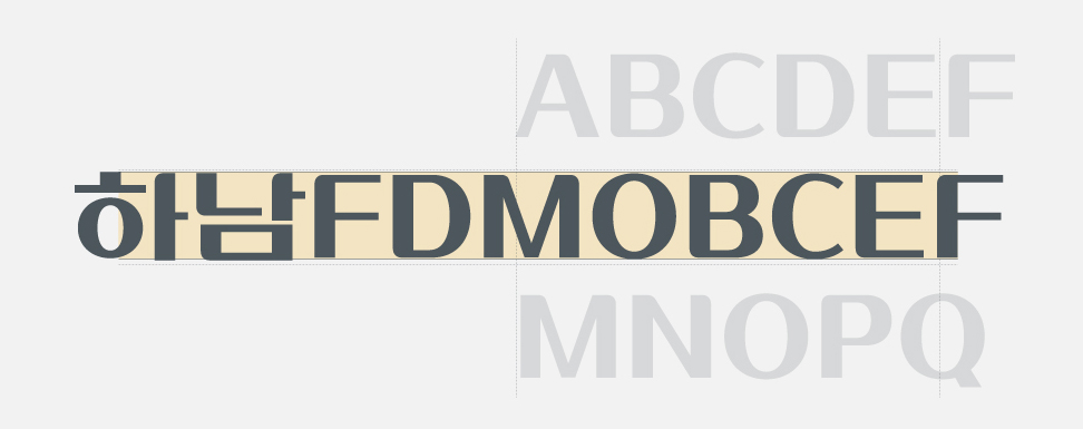 영문에서도 동일한 획대비 특징과 단단하고 강한 인상을 느낄 수 있는데요. 영문 제작에서도 국문과의 혼용을 고려하여 최적의 크기 및 글줄로 보이도록 디자인했으며, 굴림 효과와 여유로운 곡선 등을 적용했습니다.