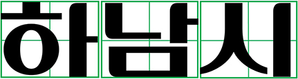 제목용 서체에서 볼 수 있는 굵은 세로 획과 얇은 가로 획의 시원한 획대비는 하남시의 역동적인 성장을 표현한 것으로 하남시의 이미지를 더욱 직관적으로 서체화했습니다.