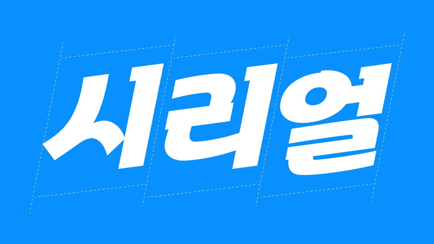 속도감이 느껴지는 서체 스타일이 리얼리티 예능이나 빠른 화제 전환이 필요한 유튜브 등 영상 콘텐츠의 타이틀로 잘 어울려요. 두꺼운 굵기와 적당한 세리프로 무겁지 않게 주목도를 높여줍니다.