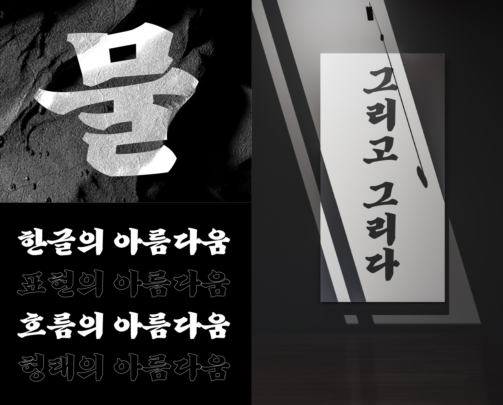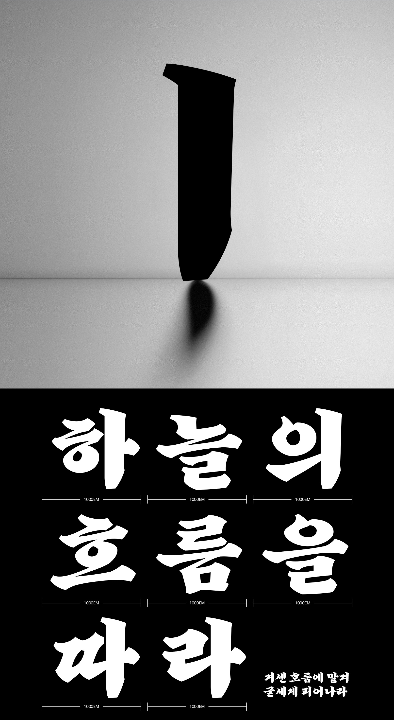 강인한 필획과 유려한 리듬이 공존하는 이 서체는 단어 하나만으로도 메시지를 예술처럼 전달할 수 있습니다.