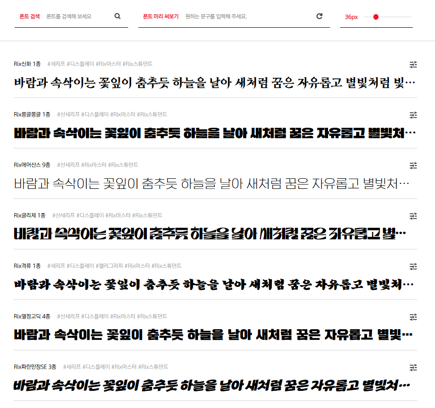 그리고, 트렌드를 빠르게 반영하는 다양한 폰트들은 RixFont클라우드에서 만나보세요.