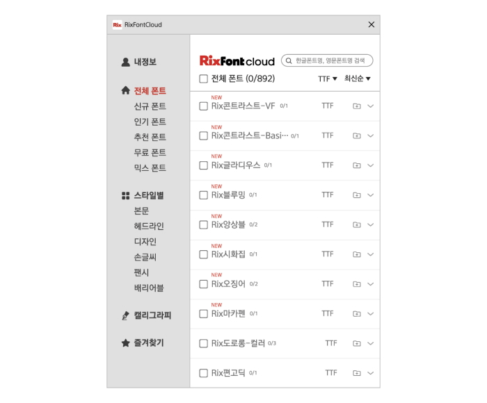 RixFont와 다온폰트, 티랩, 타이포디자인 연구소, 닥터폰트 등 국내 유명 폰트 제작사의 폰트는 물론이고,