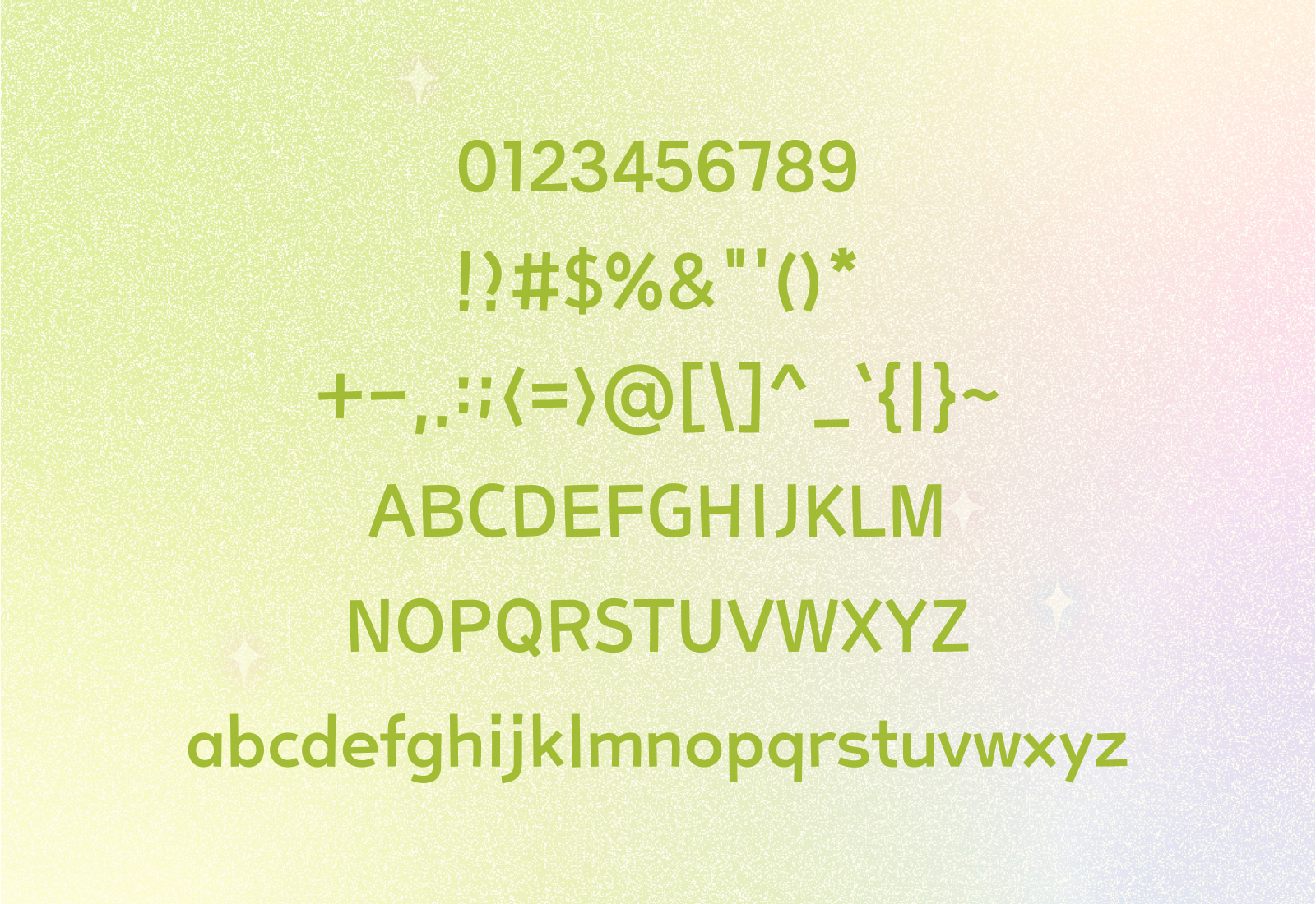 간결하면서도 부드러운 형태가 영문, 숫자, 특수문자 전반에 일관되게 이어져, 전체적인 분위기를 자연스럽게 유지해줍니다.