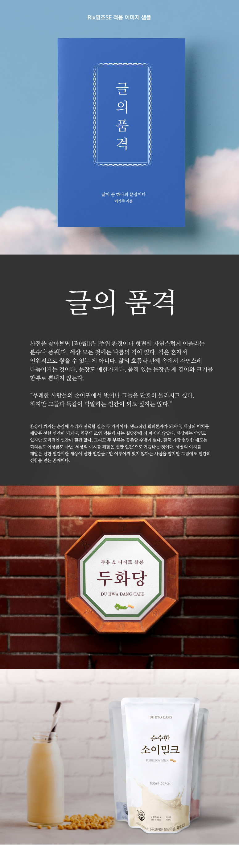 Rix명조SE는 최적의 기울기와 고선명 출력을 위한 자소설정, 초성 설정의 상단 위치 조정으로 모던한 감각을 표현한 본문형 명조입니다.