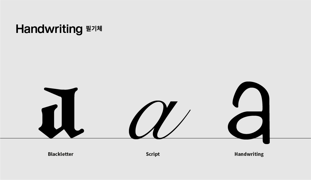 • 흘림 필기체에서 유래한 서체들로 일반적인 Handwriting 보다 격식있는 캘리그래피 서체입니다.