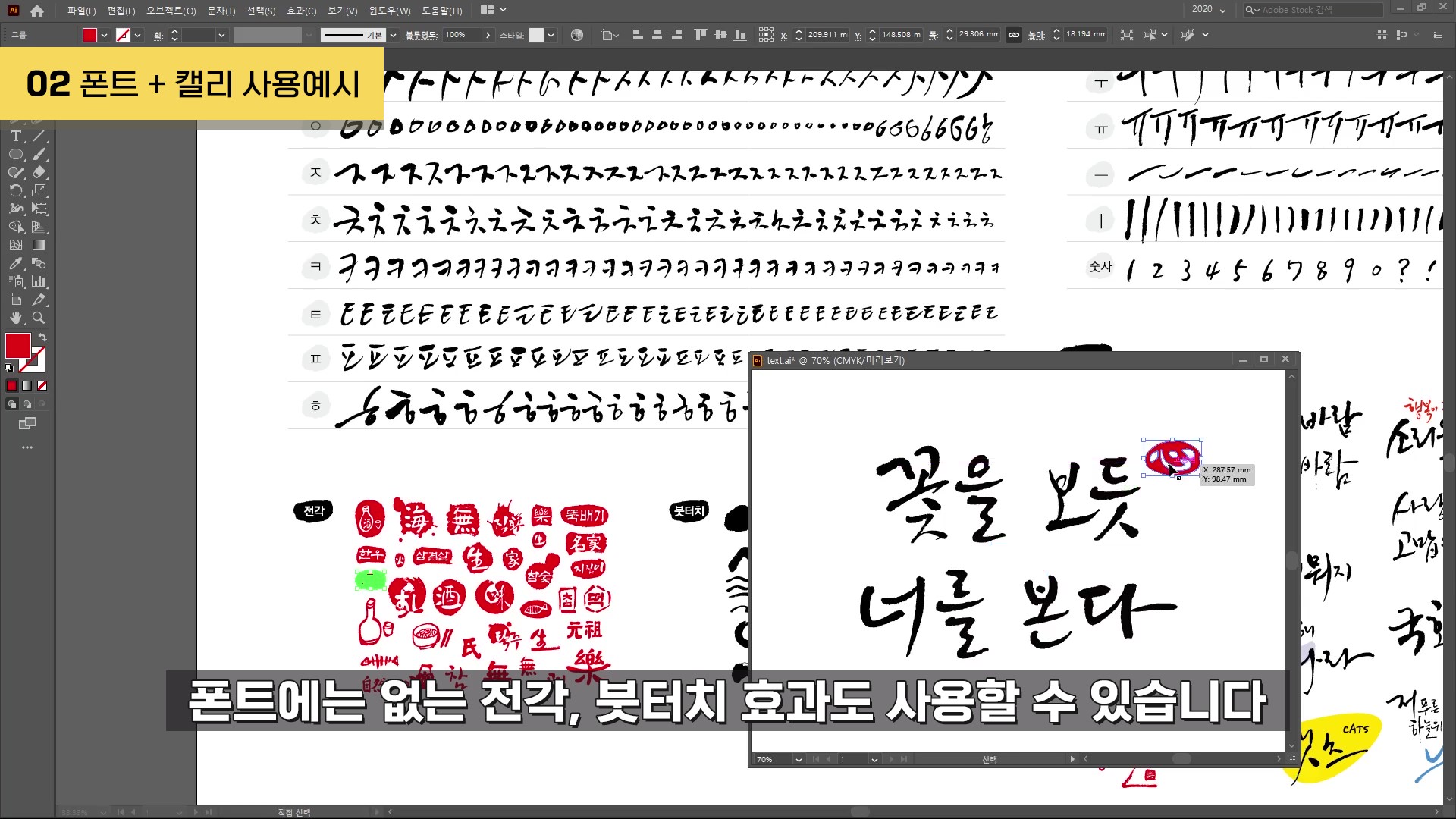 아래와 같이 폰트에는 없는 전각이나 붓터치 등 일러스트적인 효과도 추가할 수 있어 더욱 풍성한 디자인을 만들 수 있답니다.