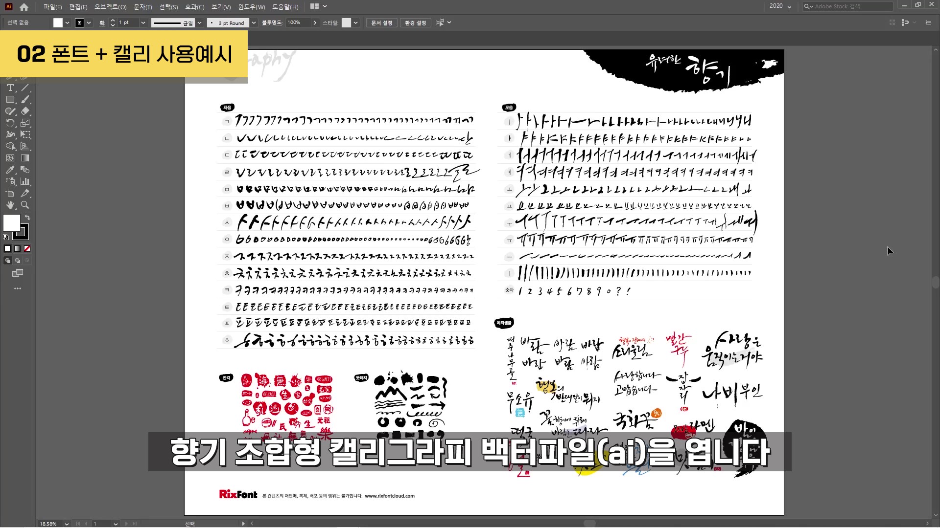 Rix캘리그라피 전종(34종)은 홈페이지 - 폰트서비스 구독 - 마스터 패키지 구독 시 사용할 수 있다는 점 참고 바랍니다!