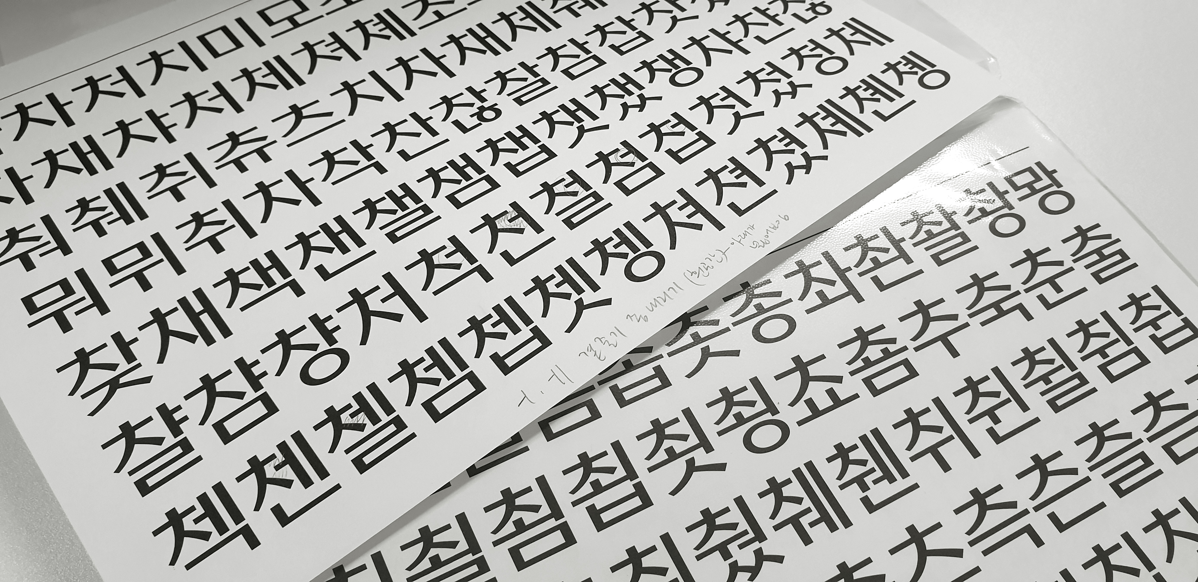 수정을 하면 할수록 좋은 글이 탄생하듯, 폰트도 다듬고 다듬고 또 다듬는 과정이 필요합니다. 그래서 디자이너들은 계속 '쓰기'를 반복하죠. 그 과정에서 뭔가 부자연스럽거나 공간 분배가 아쉬운 부분을 발견하면 또 여러 번의 수정을 거칩니다. 최종 완성본이 나오기까지 계속해서 써보고 수정하는 과정은 더 좋은 폰트를 만듭니다.