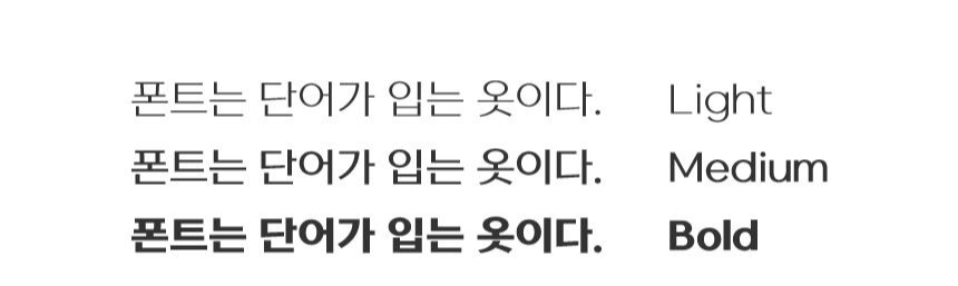 이번 신서체는 수식어가 참 많은데요. 산뜻한 고딕, 손맛이 담긴 고딕, 편안한 고딕 등 모두 포스트 폰트를 보면 느껴지는 단어들입니다. 그중에서도 단연 '산뜻하다'라는 형용사는 이보다 더 폰트에 대한 느낌을 잘 표현해 줄 수 있는 말이 있을까 싶은 수식어예요. 보기에도 그렇지만 써보면 더더욱, 서체 자체에서 산뜻함이 느껴집니다. 아무래도 가장 얇은 Rix포스트 Light가 제일 공간감이 많이 느껴져 시원하고, 웨이트가 굵어질수록 단단하고 견고한 고딕의 느낌이 납니다. 굵기는 총 3종.