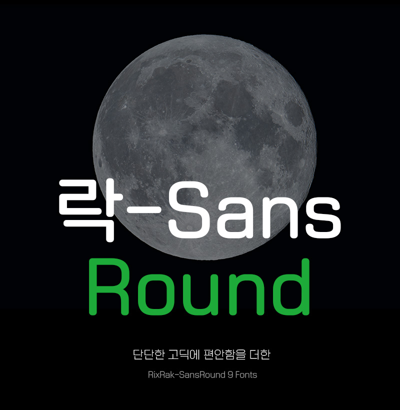얼마전 K-디자인 어워드에서 Rix락-시리즈가 대상을 받기도 했죠. 수상을 기념해 락-산스굴림도 출시한 것도 있습니다. 락산스, 락세리프가 국제적인 디자인 대회에서 상을 받은 것을 기념하는, 또 감사한 마음으로 다소 빠른 시일 내 라운드도 기획하고 제작에 들어갔습니다. 노력 끝에 이렇게 11월에 선보이게 되었습니다.