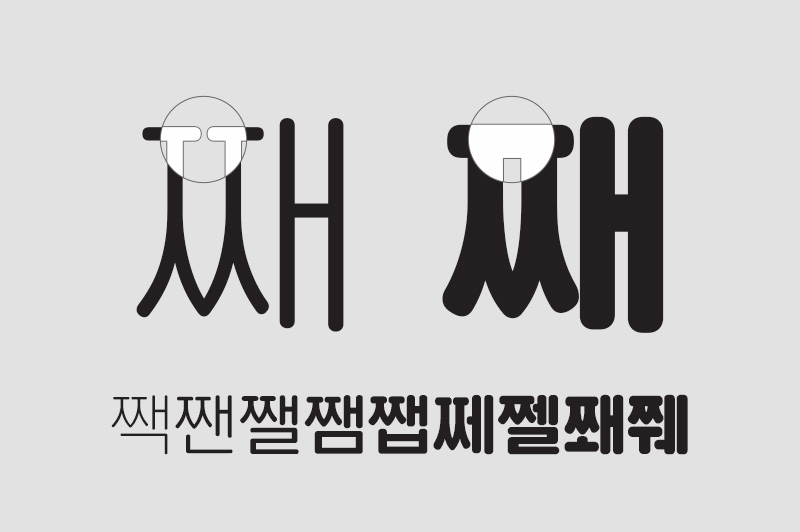 획이 많은 ㅐㅒㅔㅖㅙ ㅞ 중성과 만나는 ㅉ꼴 디자인의 경우, 두꺼운 굵기에서 가운데 공간을 붙여 가독성을 보완하였습니다. 편안하게 읽히도록 디테일한 부분을 더욱 신경 써서 제작했습니다.