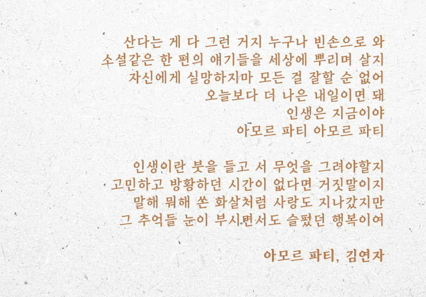이제 2021년 새해가 밝았습니다. 정말 평범했던 일상이 많이 바뀌었지요. 친구들과 카페에 모여 떠들던 수다, 가족들과 TV 앞에 모여 앉아 웃고 즐기던 연휴의 풍경, 연말연시 시끌벅적한 모임들도.. 모든 게 너무나 익숙한 나날이었는데 이제는 겨우 온라인으로 볼 수 있는 얼굴들에 서글프기만 합니다. 올해는! 많은 것이 다시 예전으로 돌아가길 바라봅니다. 조금 슬플 땐 트로트 한 자락 듣고, 웃으며 흘러 보낼 수 있길!
