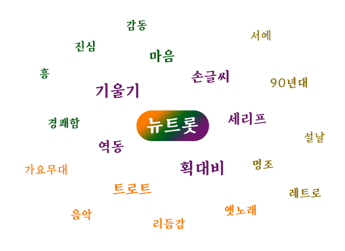 2020년은 트로트로 시작해 트로트로 마감한 해라고 해도 과언이 아닐 텐데요. 역시 뉴트롯은 트로트를 겨냥해 제작한 서체라고 봐도 될까요?