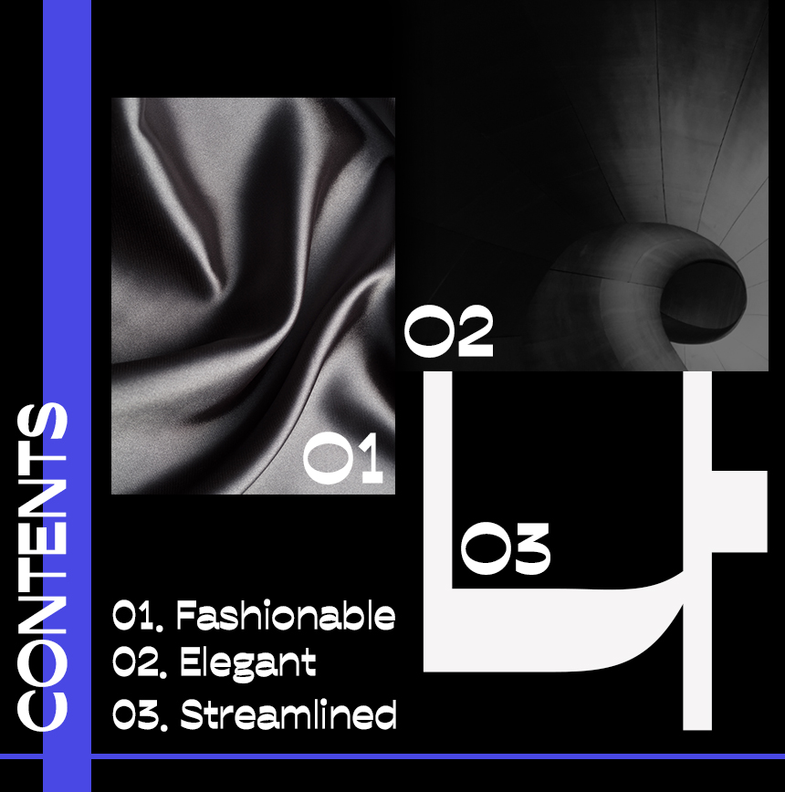 고급스럽고 세련된 패키지 디자인에 활용도가 높습니다. 브랜드명이나 타이틀에는 헤드라인에 적합한 슬릭 02를 활용하고 본문에는 두께의 폭이 비교적 일정한 두께를 가진 슬릭01을 활용하면 눈길을 끄는 매력적인 디자인을 할 수 있습니다.