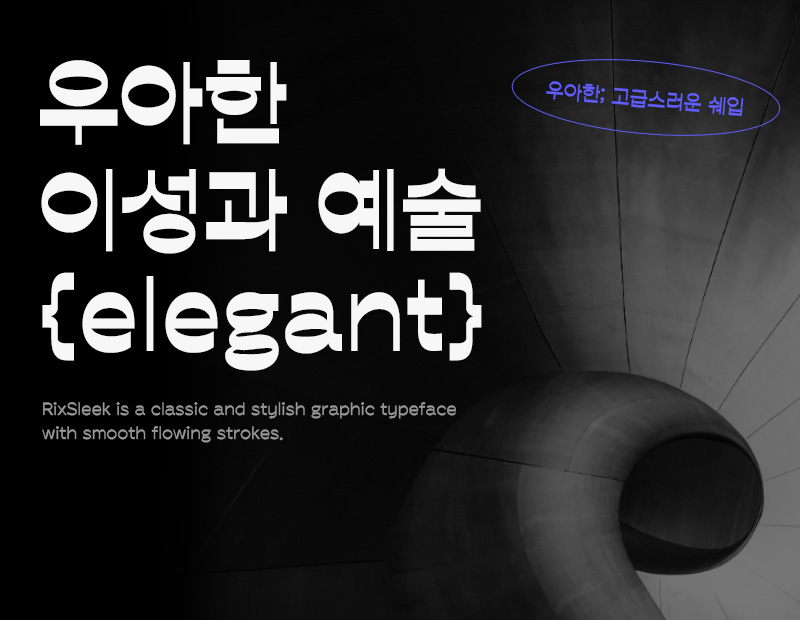 여러분 '뉴노멀(New Normal)'이라는 말을 아시나요? 시대 변화에 따라 새롭게 떠오르는 기준이나 표준을 뜻하는 용어인데요. '코로나19로 인해 마스크 패션이 뉴노멀이 되었다'와 같이 쓰이고 있는 말입니다. 이번에 소개해드릴 신서체가 바로 그런 새로운 기준이 될 폰트가 되지 않을까 싶습니다. 매끄럽게 흐르는 라인과 절제된 세련미가 묻어나는 역대급 트렌디한 폰트,「Rix슬릭」입니다. 어떤 폰트일지 기대감 가득 안고, 폰트 디자이너와의 인터뷰 먼저 들어볼게요!