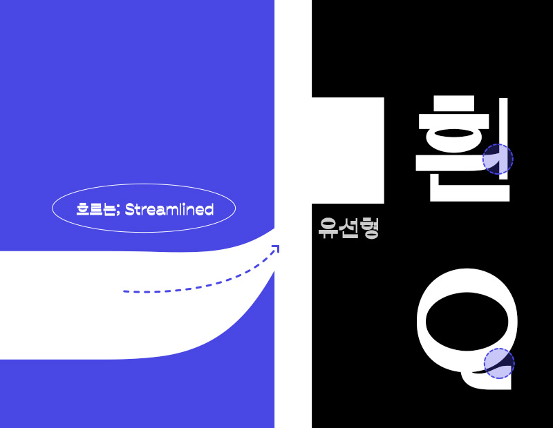 매끄러운 시원스러움이랄까요. 스키점프대같은 곡선 자소라던가, 정원형의 ㅇ받침과 그 공간을 가르는 ㄱ이라던가 하는 부분들이 매력 포인트 같습니다.