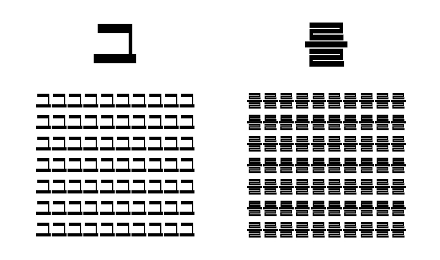매끄러운 시원스러움이랄까요. 스키점프대같은 곡선 자소라던가, 정원형의 ㅇ받침과 그 공간을 가르는 ㄱ이라던가 하는 부분들이 매력 포인트 같습니다.
