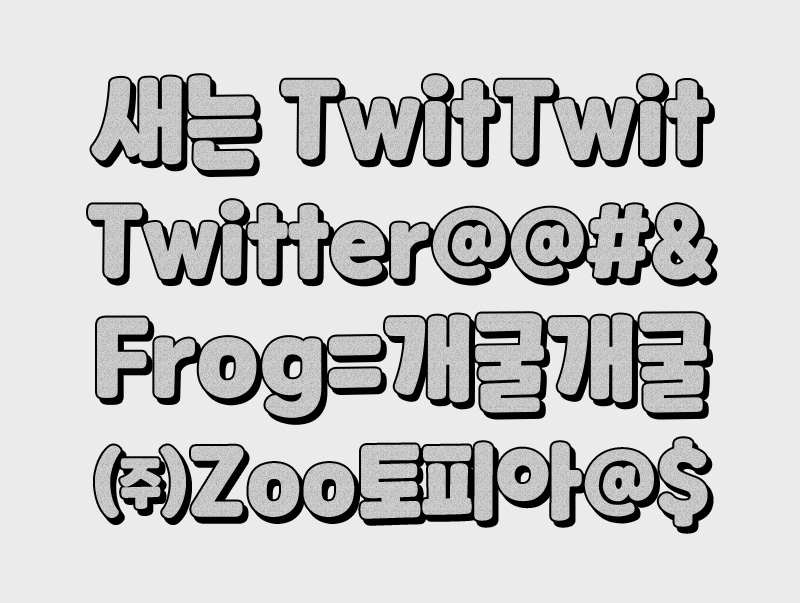 귀여운 동물 친구들에게 모티브를 얻은 폰트인 만큼 통통 튀는 유튜브 채널 썸네일 또는 배너 디자인으로 활용하기 좋아요. 눈에 쉽게 들어오는 큼직한 크기로 테두리를 넣어 더욱 돋보이게 사용해 보세요.