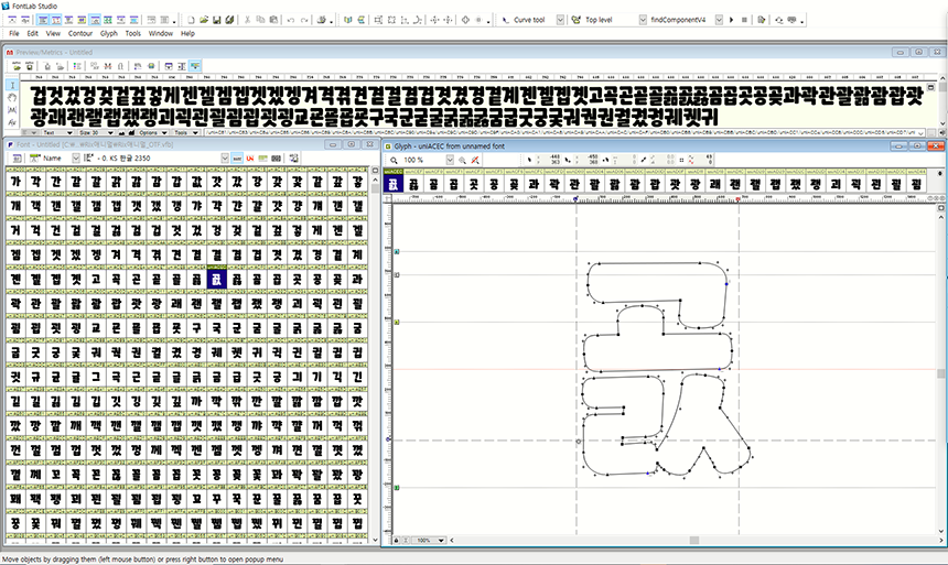 획이 굵다 보니 겹쳐지는 부분이 많았고, 이 부분을 어떻게 처리할까를 가장 고민했던 것 같습니다. 또 꼴(글자) 별로 모양이 조금씩 달라지다 보니 획을 조절할 수 있는 여지가 각각 달라서 특히 신경 써서 작업했던 것 같아요.