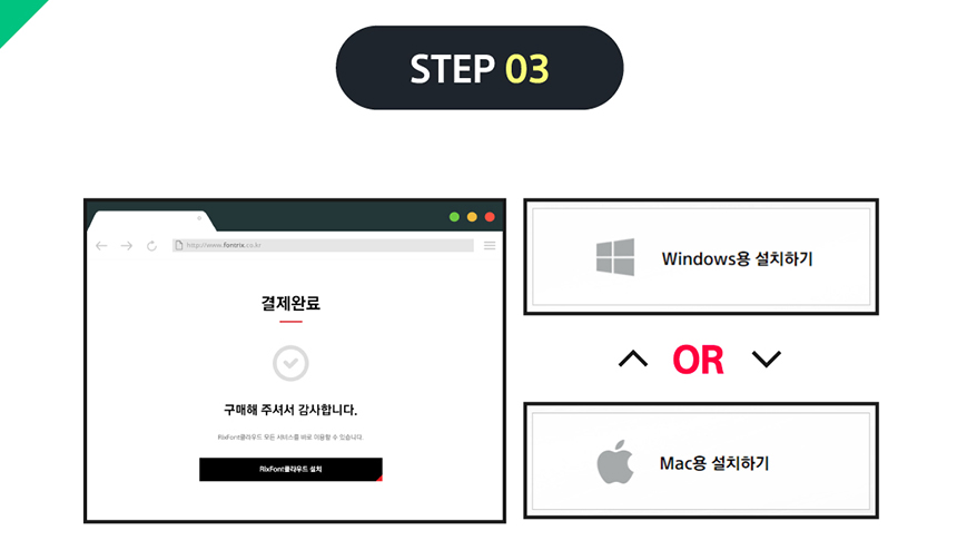 3. 카드 정보 입력 후 신용카드 결제 -> 결제 완료 확인 후 사용 환경에 맞는 RixFont클라우드를 설치해 주세요.