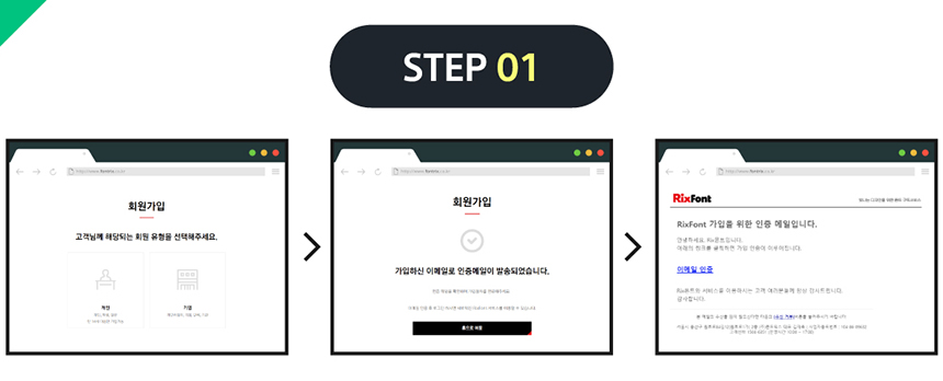 1. 릭스폰트 공식 홈페이지에서 회원 가입 후 이메일 인증을 해주세요!