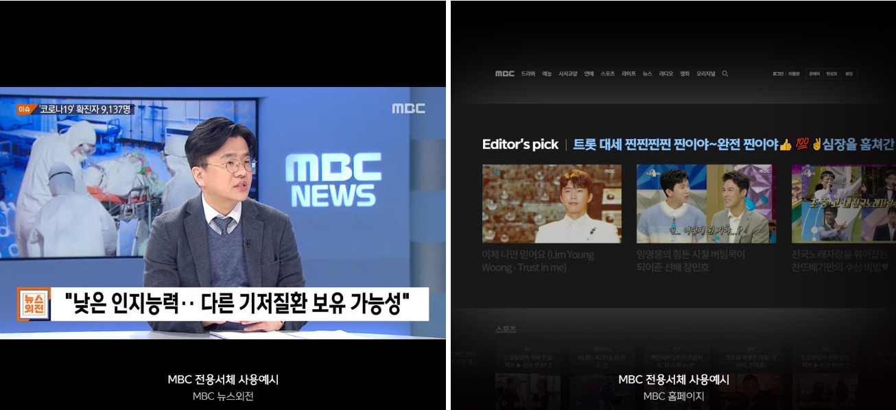 원래는 MBC 그래픽팀 디자인용으로 제작하였는데, 사내 반응이 좋아서 뉴스 자막에도 사용하게 되었습니다.