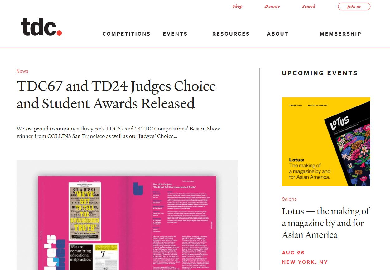 News We are proud to announce this year’s TDC67 and 24TDC Competitions’ Best in Show winner from COLLINS San Francisco as well as our Judges’ Choice… View News The World’s Best Typography (Typography 41) is the only awards annual devoted exclusiv