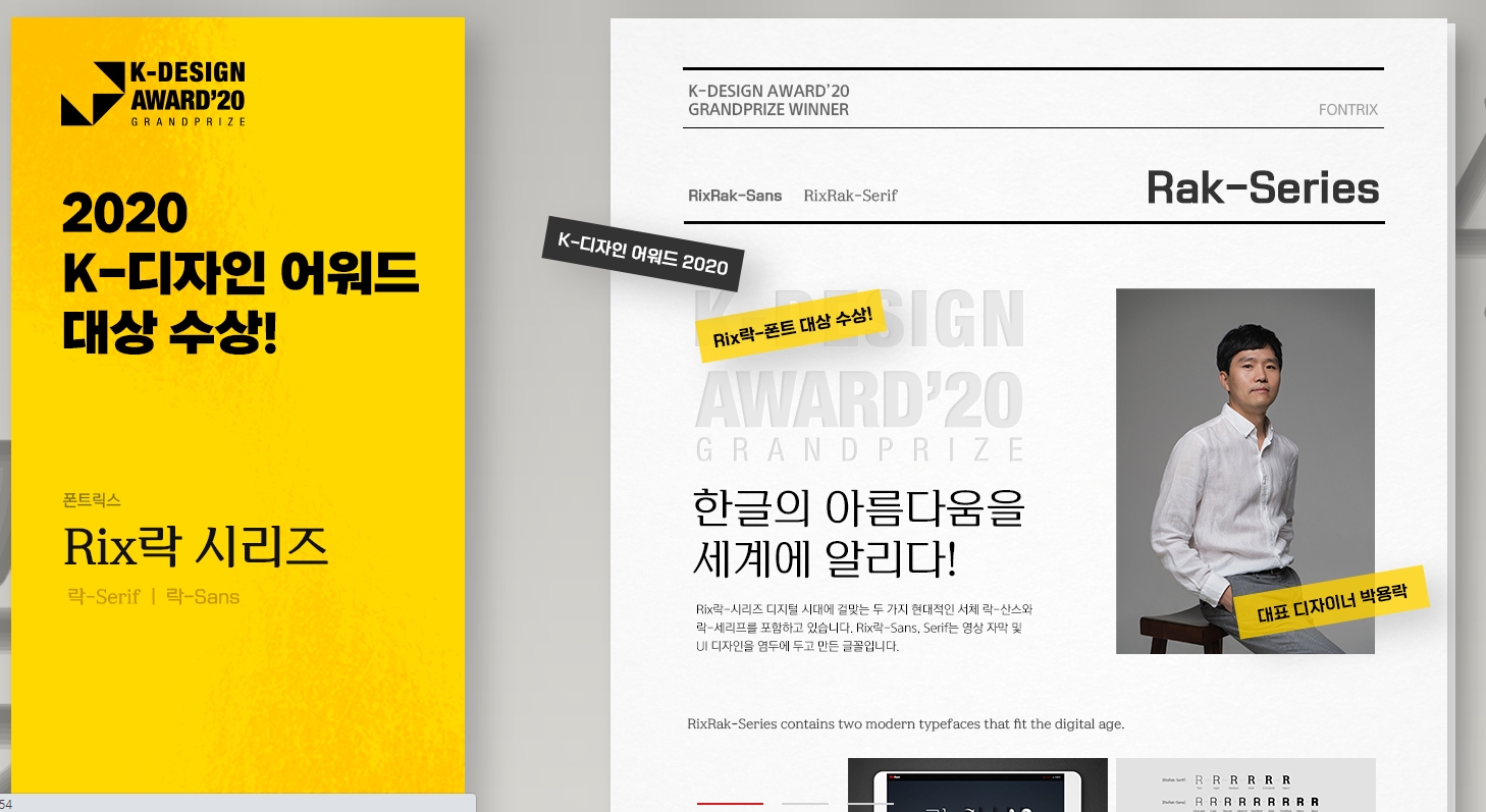 디자이너 집중탐구 인터뷰 이름을 건 Rix락-시리즈 폰트, 국제 디자인 공모전에서 대상 수상 박용락 폰트 디자이너 @rakfont 20년 넘게 폰트 디자인 업계에 종사하며 대한민국 대표 폰트 디자이너로
